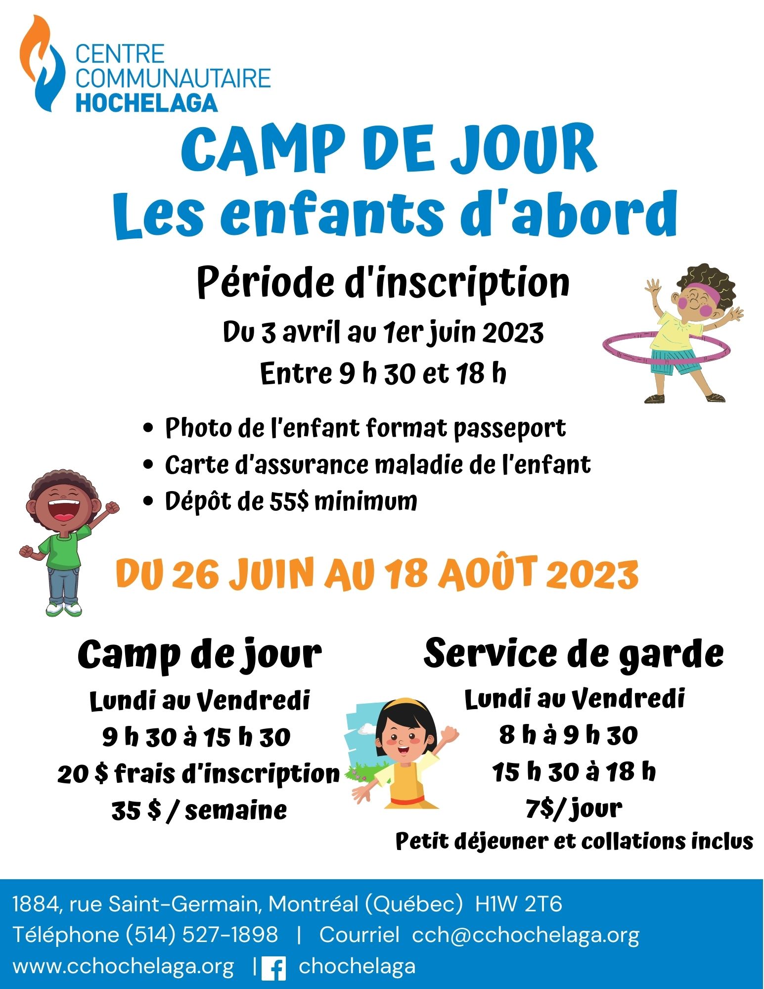 Tenus durant la semaine de Relâche, le camp du CCH permet aux 4 à 12 ans de fraterniser avec d’autres jeunes de leur âge en participant à une grande variété d’activités. Ils offrent également aux parents l’occasion de mieux planifier la période des vacances et de s’assurer que leur enfant participe à des activités stimulantes dans des conditions agréables et sécuritaires.