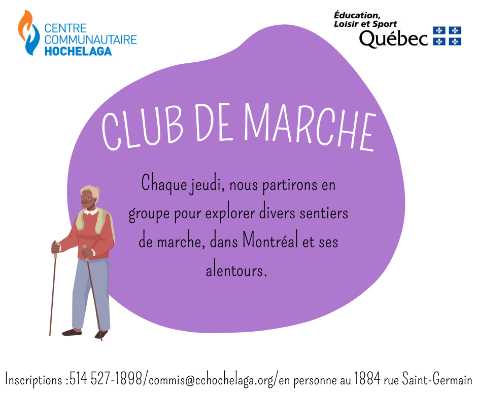 - Club de marche: Chaque jeudi, nous partirons en groupe pour explorer divers sentiers de marche, dans Montréal et ses alentours.